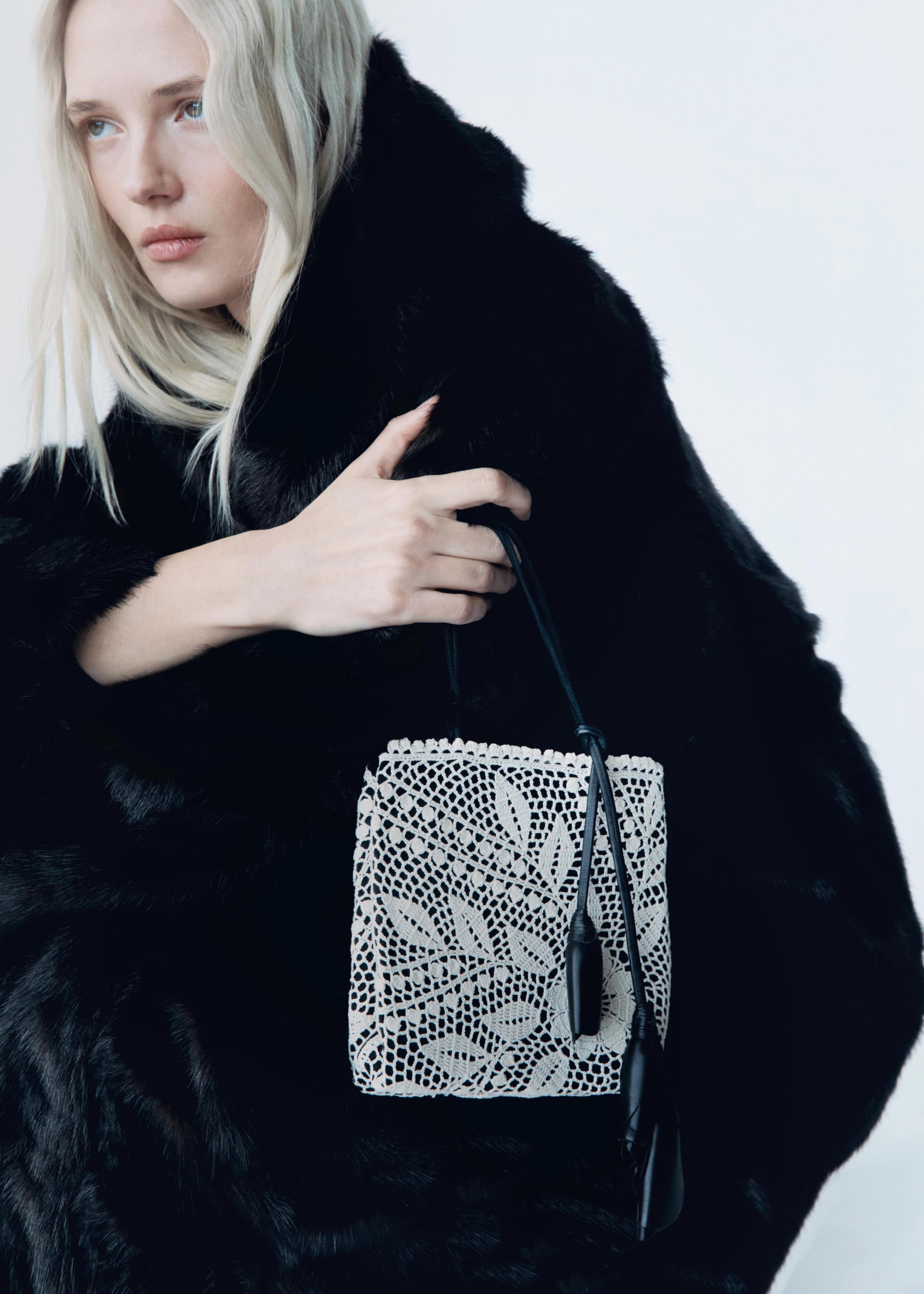 The Julia handbag makes its debut as a prelude to the Pre-Spring 2026 collection - a first glimpse of what’s approaching. This petite satin bag, intricately wrapped in cream crochet, distills Magda’s signature romance and craftsmanship while channeling the energy of the new season.