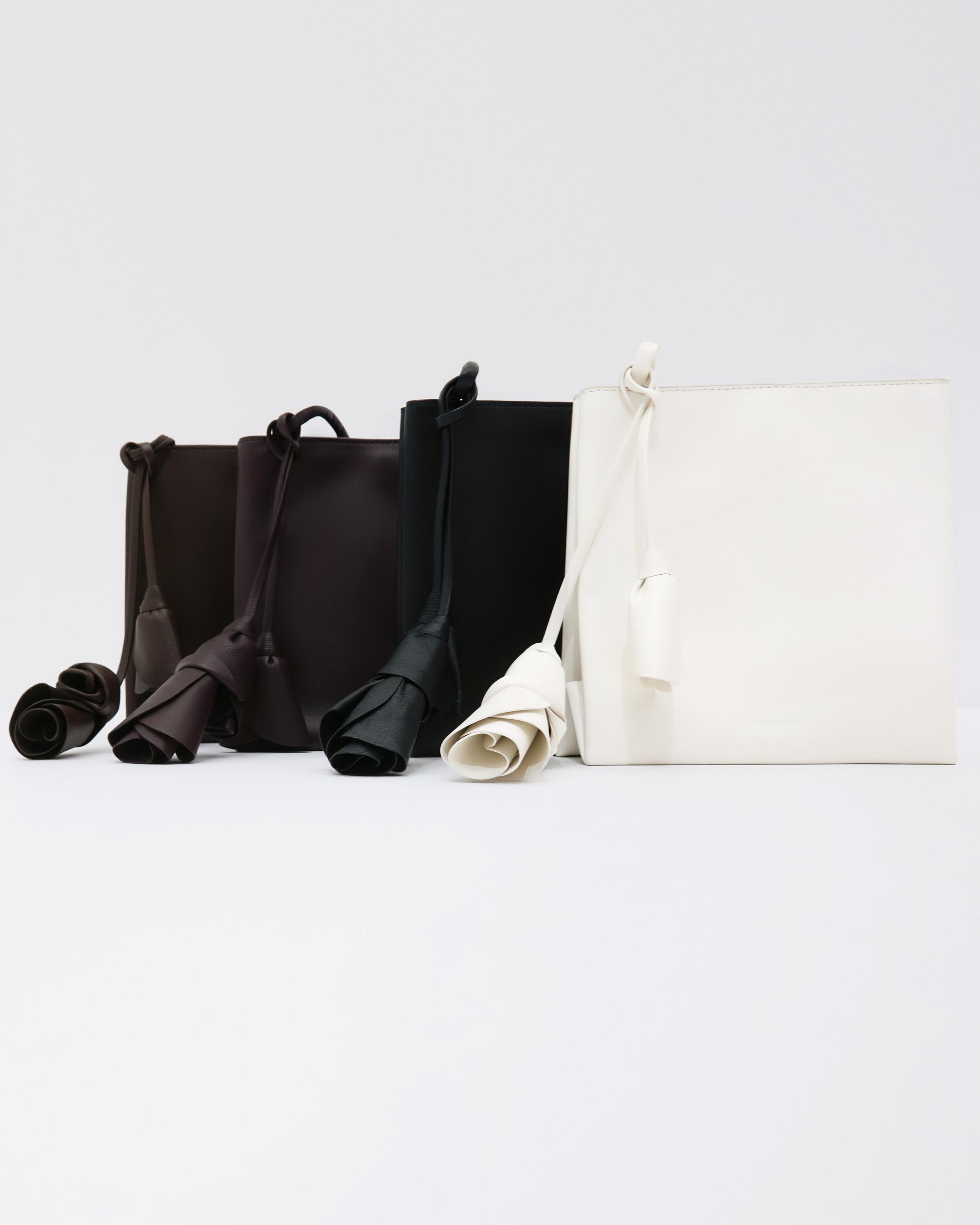 The next chapter of the Spring-Summer 2026 story: the Julia handbag in smooth leather, defined by a clean, structured shape, slim handles, and Magda Butrym signature craftsmanship. Inside, two compartments and a crochet-trimmed slip pocket bring thoughtful function, while a rose-shaped leather charm adds the house’s romantic floral touch.